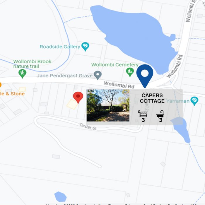 Capers Cottage is a beautifully decorated country self-contained cottage located in walking distance to the historic Wollombi Village. The cottage enjoys wide sweeping screened verandahs, an open fireplace in the lounge room for chilly winter evenings and the use of an inground swimming pool for the warmer months. Capers Cottage can accommodate for a total of eight guests which can be a family, three couples or a group of singles. Bus at door to concerts in Pokolbin.
