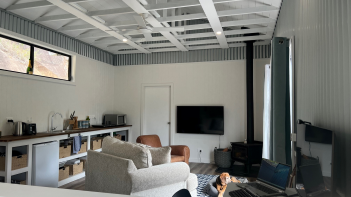 The property is solar-powered, with grid connection as back up, and has Starlink broadband internet, so suitable for all WFH applications, including video conferencing. There is a desk with computer screen for use for work or writing that novel.